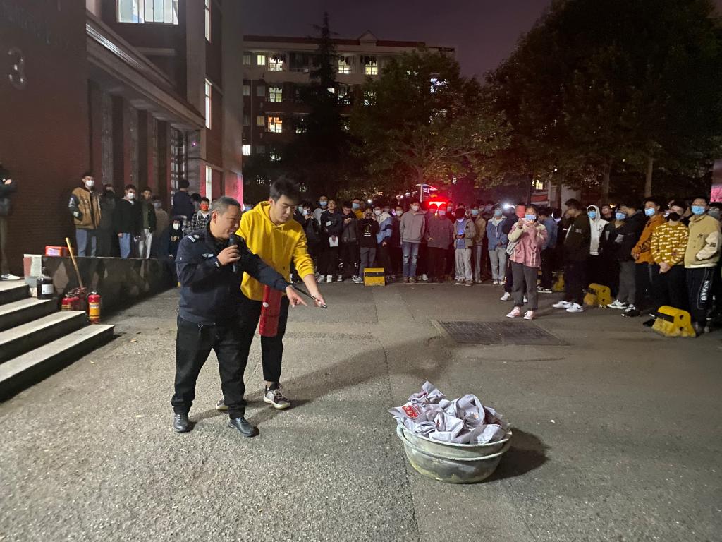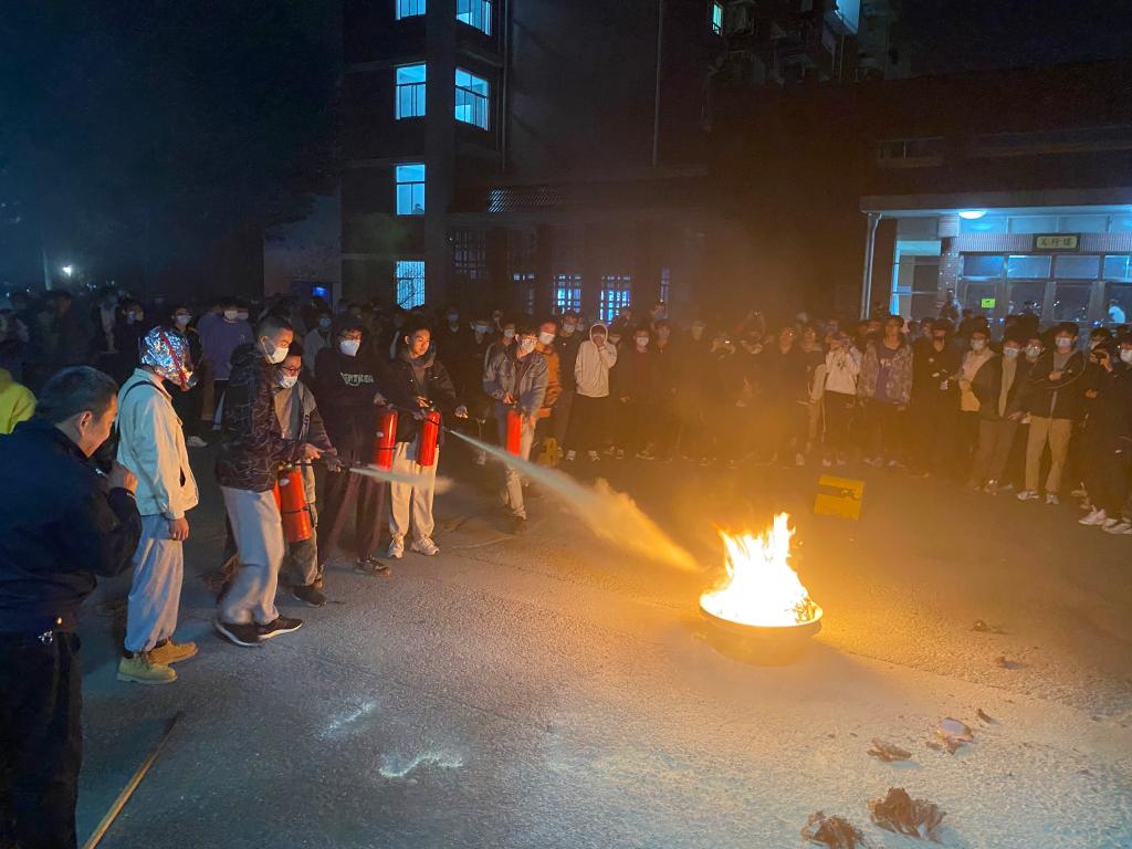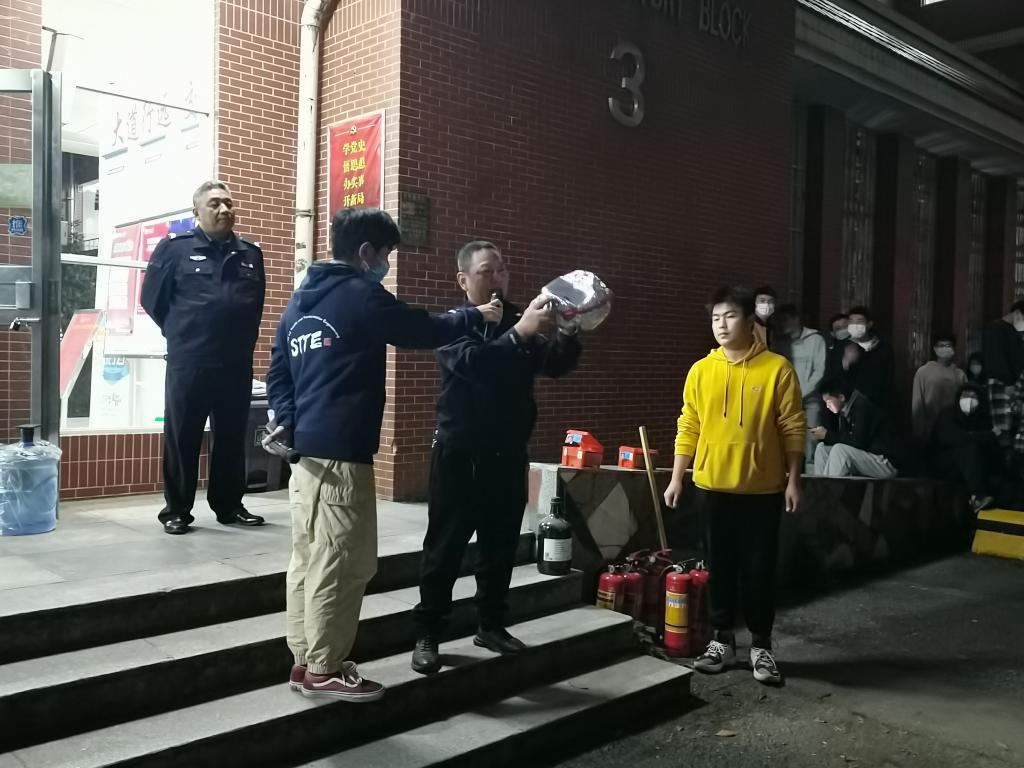 “大家在使用灭火器时,一定要注意‘提、拔、握、对、喷’五个重要步骤,特别是要注意使用前拔掉保险销,距离燃烧区域2米左右的位置,朝着火焰根部喷射...”,消防演练结束后,保卫处消防科易国安就灭火器的分类及使用方法,在面对不同火种时应当采取何种的灭火措施进行了详细讲解,并邀请同学们现场进行灭火器的操作体验。