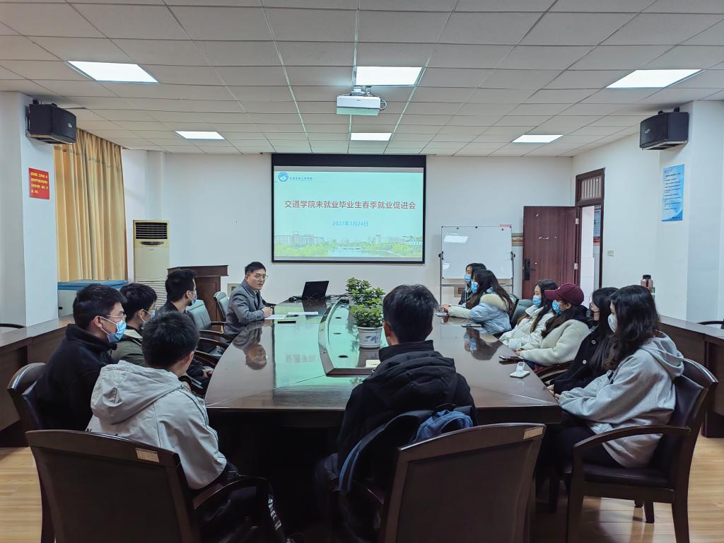 3月24日下午,交通学院组织召开未就业学生春季就业促进会,工程管理、物流专业未就业的20余名学生参加会议,学院就业专干李特超老师主持会议。
