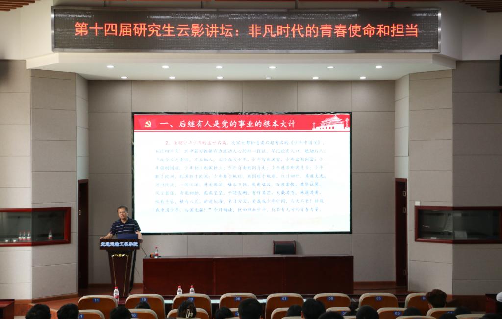 5月25日,交通学院在工科二号楼B301举办第十四届研究生云影讲坛活动,邀请马克思主义学院刘解龙教授主讲。交通学院党委副书记涂道勇、研究生辅导员彭怡峰及150余名研究生参加活动。