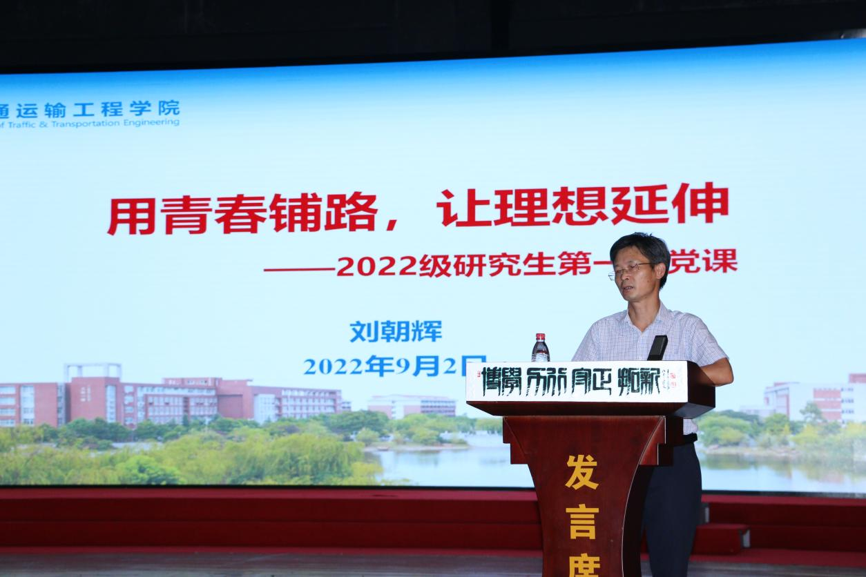 9月2日下午14:30,交通学院党委书记刘朝辉在云塘大会堂为2022级研究生新生开讲党课。