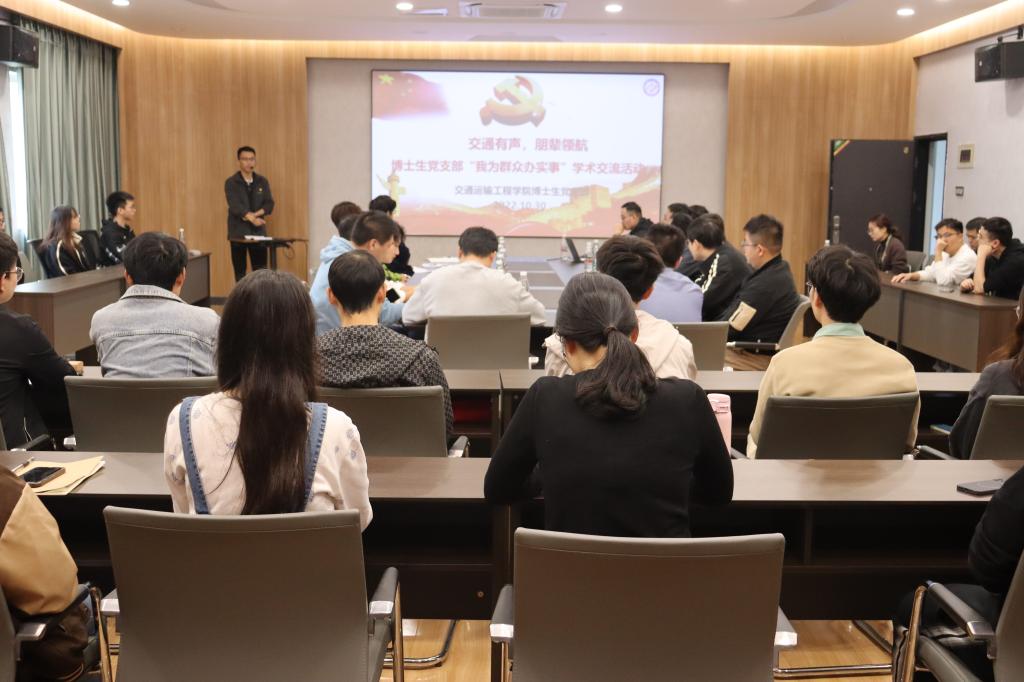10月30日下午,太阳成集团tyc122cc入口交通学院“交通有声,朋辈领航”之“我为群众办实事”活动在云塘校区公路工程实验中心开展。现场,博士生党支部精心准备了学术“大礼包”,吸引了众多博士和硕士参加。