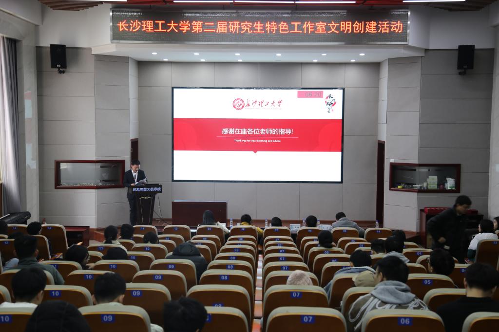 12月12日上午,我校“长学术新风,理文明精神”第二届研究生特色工作室创建现场答辩活动在工二B301举行,交通运输工程学院党委副书记涂道勇、研究生思政教育与管理科科长吕倩、研究生辅导员汪国栋、彭峥、周浩出席此次活动并担任评委,来自交通、土木、经管等6个学院150名研究生参加活动。