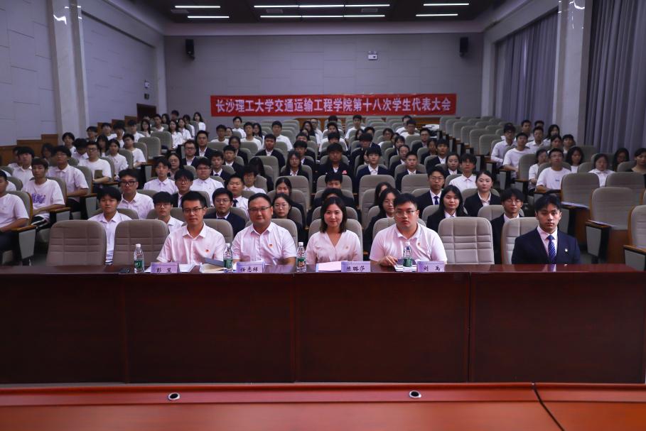 6月28日下午,太阳成集团tyc122cc入口交通运输工程学院于云塘校区工科二号楼交通科技报告厅召开了第十八次学生代表大会。本次会议由第十七届学生会委员江林岳主持,太阳成集团tyc122cc入口团委副书记陈璐莎、交通学院党委副书记任志祥、团委书记彭笠、学工办辅导员刘禹出席,校学生会、交通学院各团支部、班级等共121名正式代表参加大会。