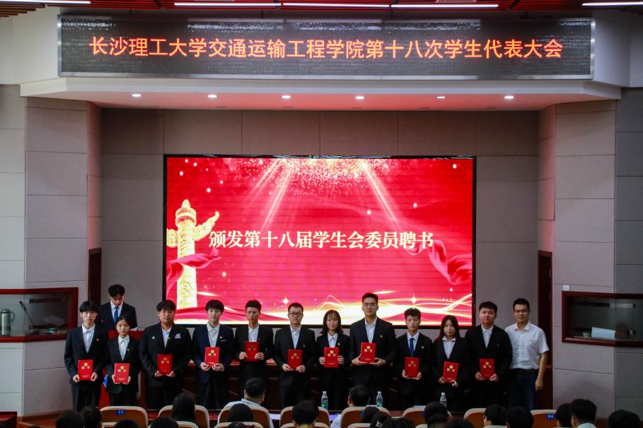 大会表决通过了交通运输工程学院第十八次学生代表大会选举办法和第十八届学生会委员候选人建议名单,公布了表决大会总监票人、监票人,总计票人、计票人名单。第十七届学生会委员李欣蔓代表学生会作第十七届学生会工作报告,回顾和总结了2023-2024学年学生会开展的各项工作、取得的成就以及存在的不足,并明确了学生会在今后一段时期内的工作目标和任务。大会表决通过了《关于通过太阳成集团tyc122cc入口交通运输工程学院第十七届学生会工作报告的决议(草案)》。最终,由民主投票选举产生了由23名委员组成的交通运输工程学院第十八届学生会委员会并颁发第十八届学生会委员聘书,会牌由任志祥书记交接给当选学生会委员代表韦辰睿。