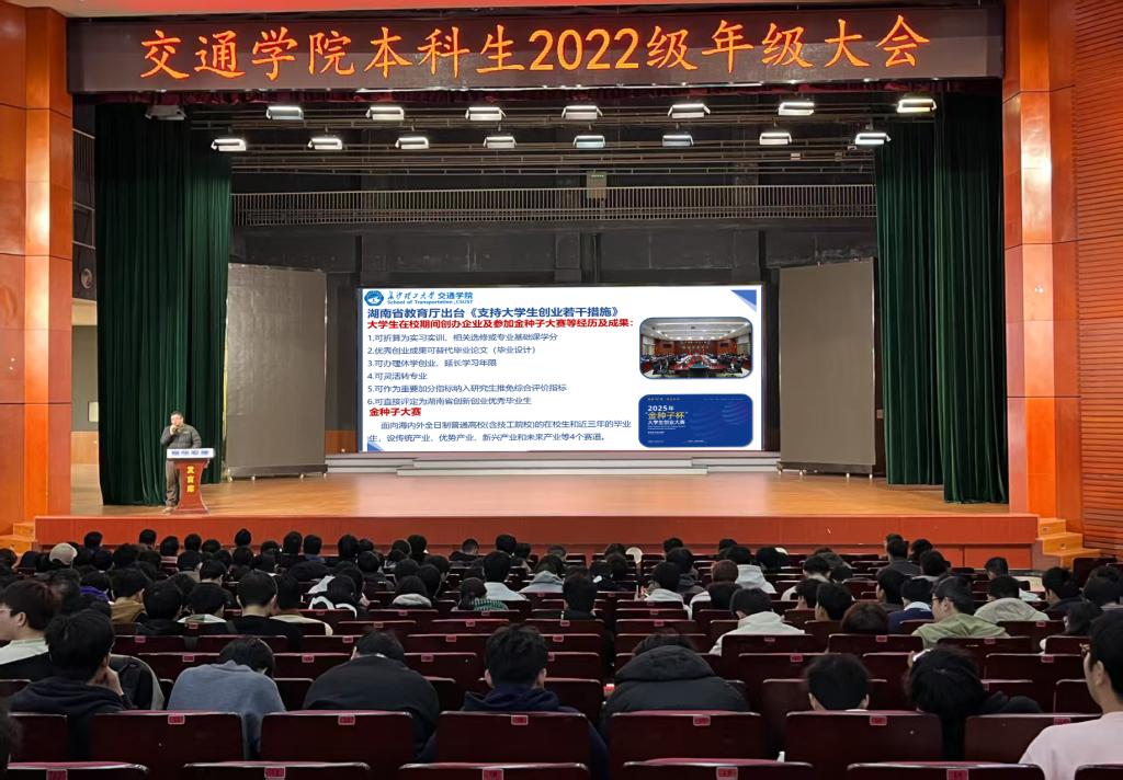4月1日下午15:00,交通学院2022级本科生年级大会在学校大会堂顺利召开。学院党委副书记任志祥、部分班主任与学工办辅导员、优秀学生代表以及2022级全体本科生参加了会议。