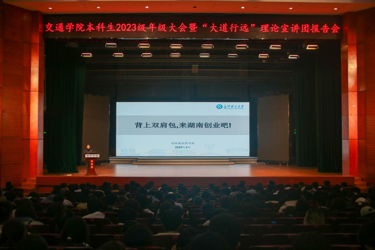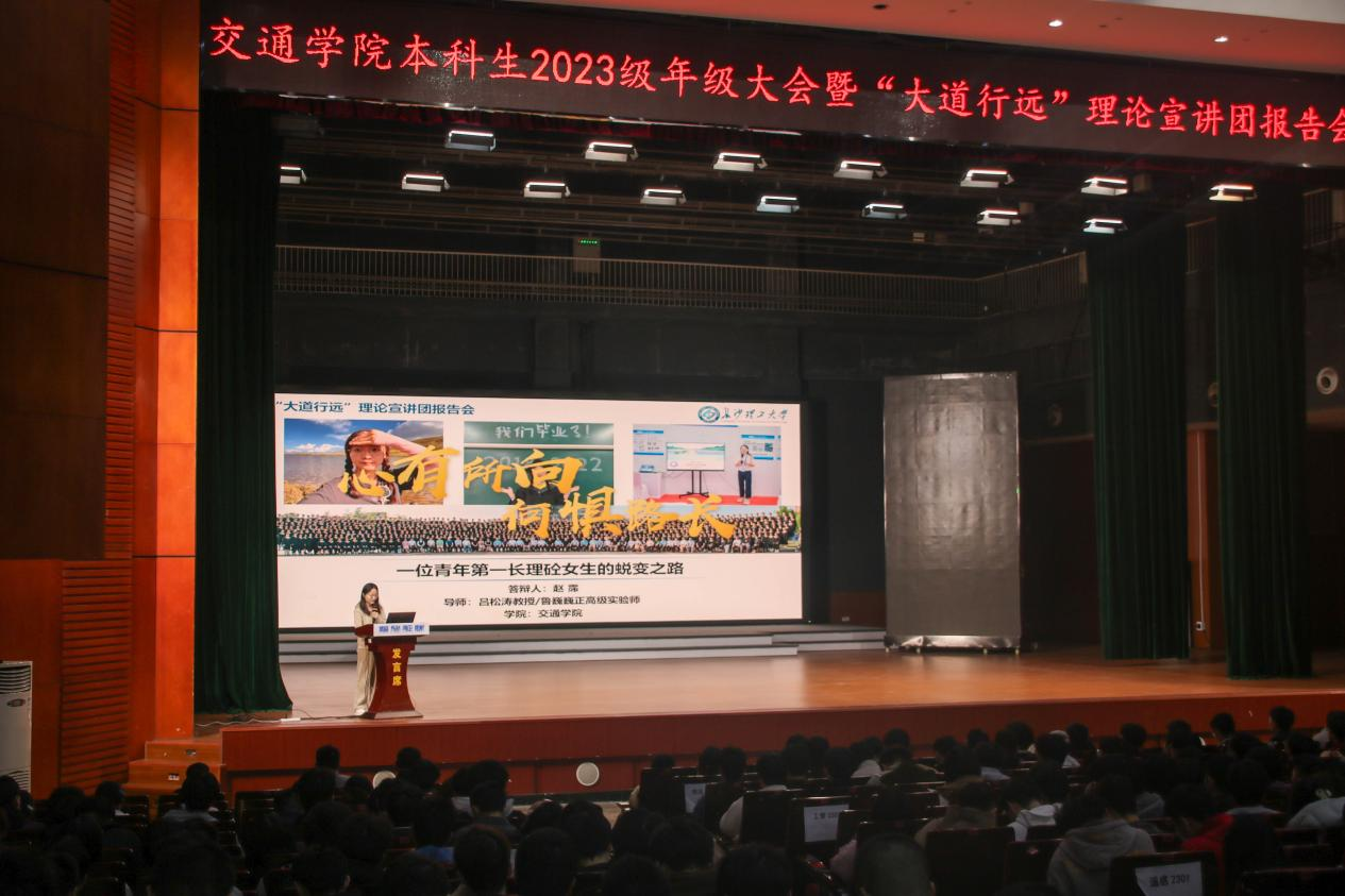 近日,太阳成集团tyc122cc入口交通学院在该校云塘校区大会堂召开2023级年级大会暨“大道行远”理论宣讲团报告会,学院党委副书记任志祥、年级辅导员、全体23级同学和“大道行远”理论宣讲团成员参会。