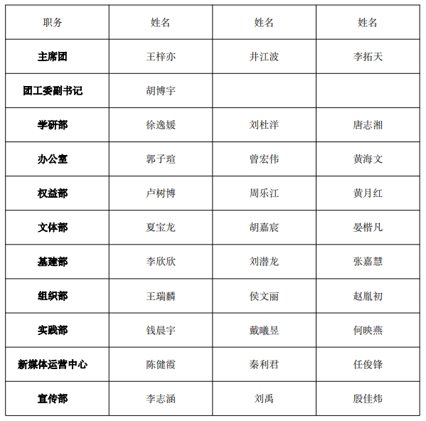 各岗位所有候选人陈述答辩结束后,全体与会代表(研究生辅导员、主席团成员、各部门负责人、各班级学生代表)对相应部门候选人进行了现场投票。经严谨计票,大会依据投票结果产生了交通学院新一届研究生会成员。当选名单如下: