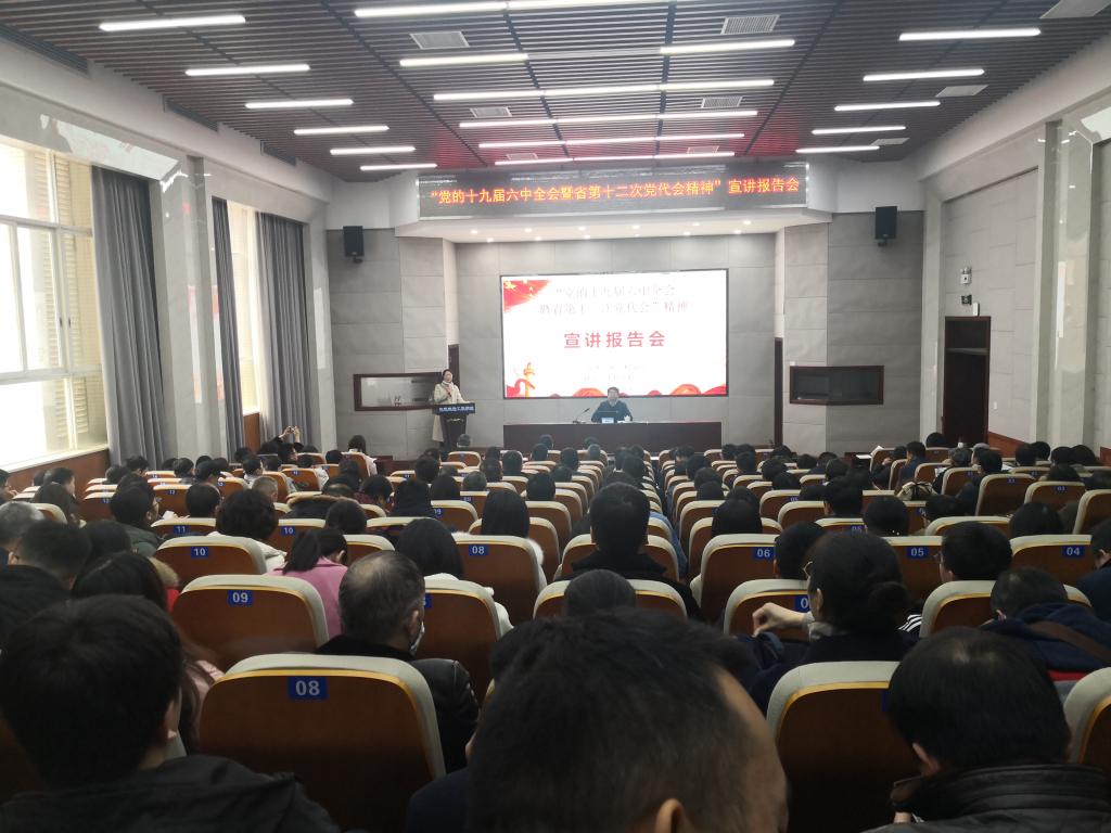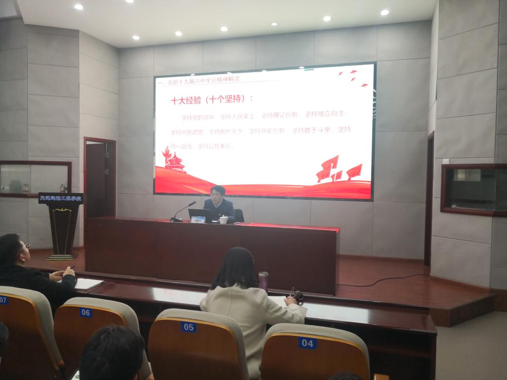 钱国平主要从党的十九届六中全会精神解读、湖南省第十二次党代会精神解读、“十个坚持”对高等教育的启示以及我校如何贯彻落实党的十九届六中全会精神等四个方面向大家进行宣讲。