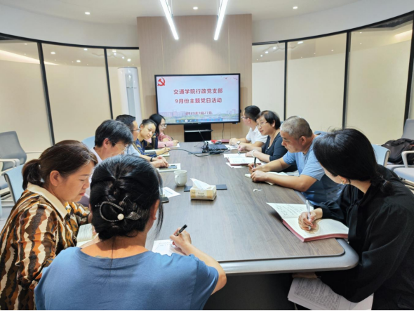 2023年9月27日下午2:30,行政党支部在工二B401开展9月份主题党日活动,支部全体党员参加,支部书记黄小花主持。