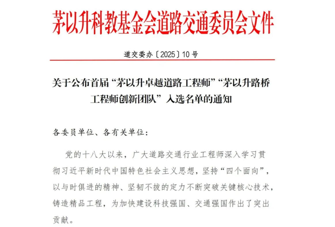 我校教师校友入选首届“茅以升卓越道路工程师”名单