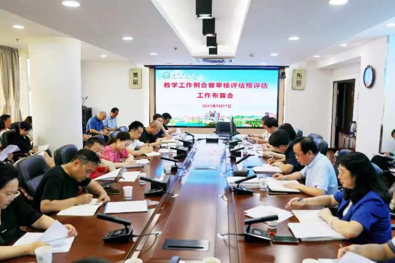 2023年8月27日上午,在一办公楼六会议室,学校召开新学期教学工作例会暨审核评估诊断性评估工作布置会,各学院分管教学、实验教学副院长,党政办、组织部、宣传部、学工部、人事处、教务处、招就处、资产处、团委、创新创业学院、信息化处、评估中心、后勤中心、校教学督导团负责人及教务处科以上干部参加会议,会议由副校长钱国平主持。