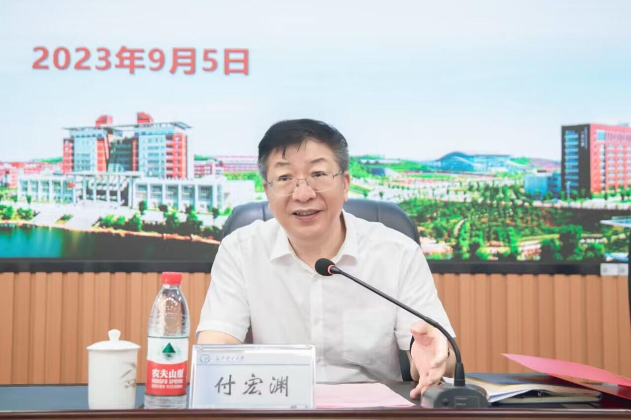 校党委书记付宏渊致欢迎辞,对为我校审核评估“把脉问诊”的各位专家表示衷心的感谢。他简述了我校学科专业、办学定位及人才培养目标等方面基本情况,并指出本科教学审核评估是推进高校分类评价、推动提高本科人才培养质量的重要手段。学校上下对本科教育教学审核评估高度重视,希望通过本次诊断评估找出人才培养各环节中存在的问题和不足。根据专家提出的宝贵意见,将认真消化、吸收,切实做好反馈意见的整改,积极补短板、强弱项、固根本;坚持“以评促建、以评促改、以评促管、以评促强”,加快推进本科教育教学高质量发展,全面提升办学质量和育人水平,着力打造特色人才培养重地,为教育强省、“三高四新”美好蓝图和中国式现代化新湖南建设提供强有力的人才支持和智力支撑。
