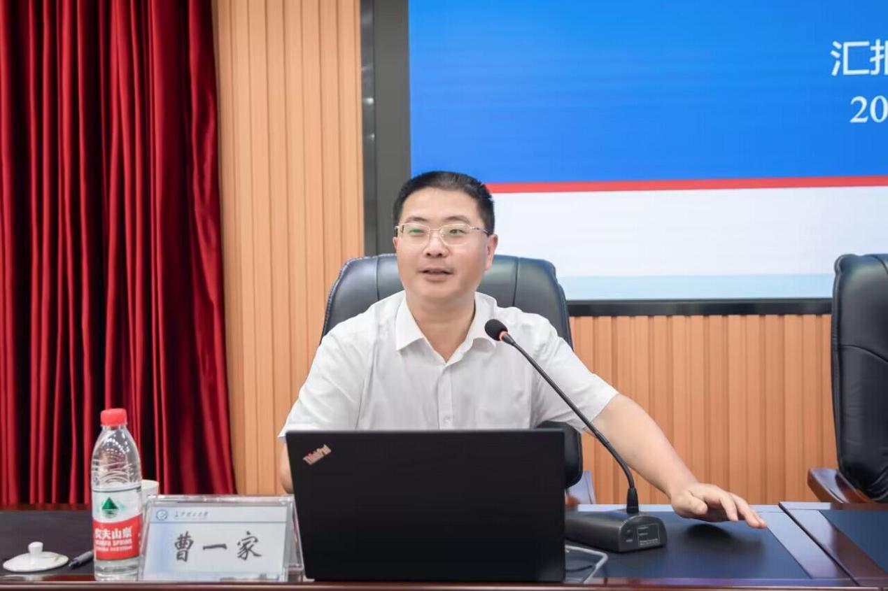 校党委副书记、校长曹一家作审核评估工作补充汇报。首先介绍我校自2018年以来本科教育教学所取得的主要成绩以及学校办学方向与理念。其次对自评报告中定量指标作进一步的补充说明,并针对相应问题提出下一步的改进举措。