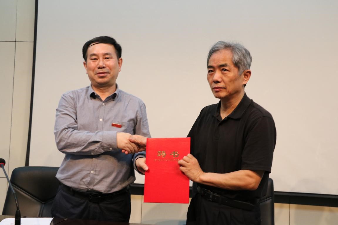 黄立宏代表学校宣读了学校文件,聘请中国工程院院士、全国建筑设计大师孟建民为我校客座教授和我校建筑学院“荣誉院长”。