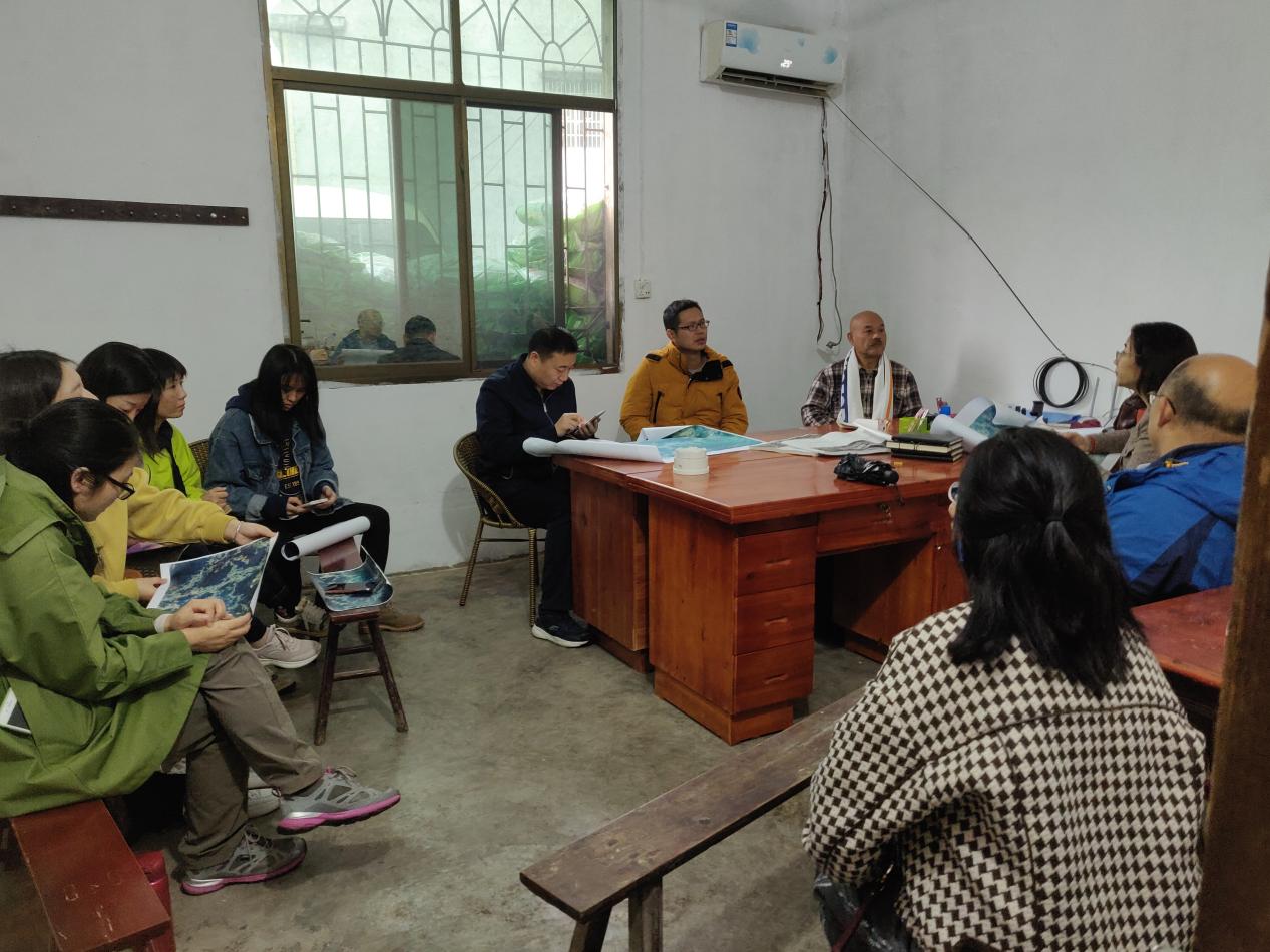 在坪山村总支部委员会办公楼进行会议总结,共同探讨坪山村未来发展之路,以及建筑学院即将开展的大学生村庄规划组织和实施方案。