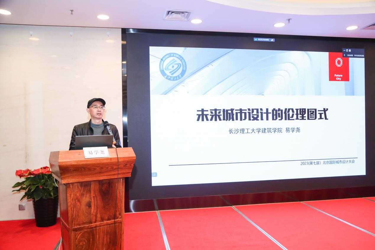11月26日上午,2023(第七届)北京国际城市设计大会专题论坛:“未来城市设计的伦理与美学学术专题论坛”在北京举办。本次论坛吸引了来自全国各地的城市规划设计机构、高校教师和科研机构的专业人士参加,为推动未来城市设计的伦理与美学研究提供了重要的平台。论坛由北京建筑大学,中国建筑文化中心主办,北京建筑大学文化发展研究院承办。我校建筑学院副教授、建筑产业与文化研究中心主任易学尧博士应邀在论坛上发言为“未来城市设计的伦理图式”的主旨报告。