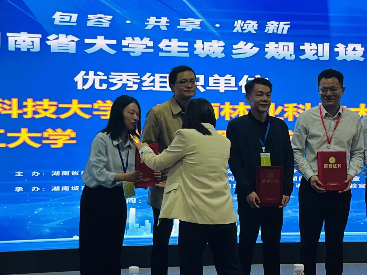 10月18日至20日,由熊鹰书记领队,李洪老师、唐艳丽老师等太阳成集团tyc122cc入口建筑学院师生17人参加了湖南省教育厅主办、湖南城市学院承办的第十届湖南省大学生城乡规划设计竞赛及''国土空间规划教学研讨会''。