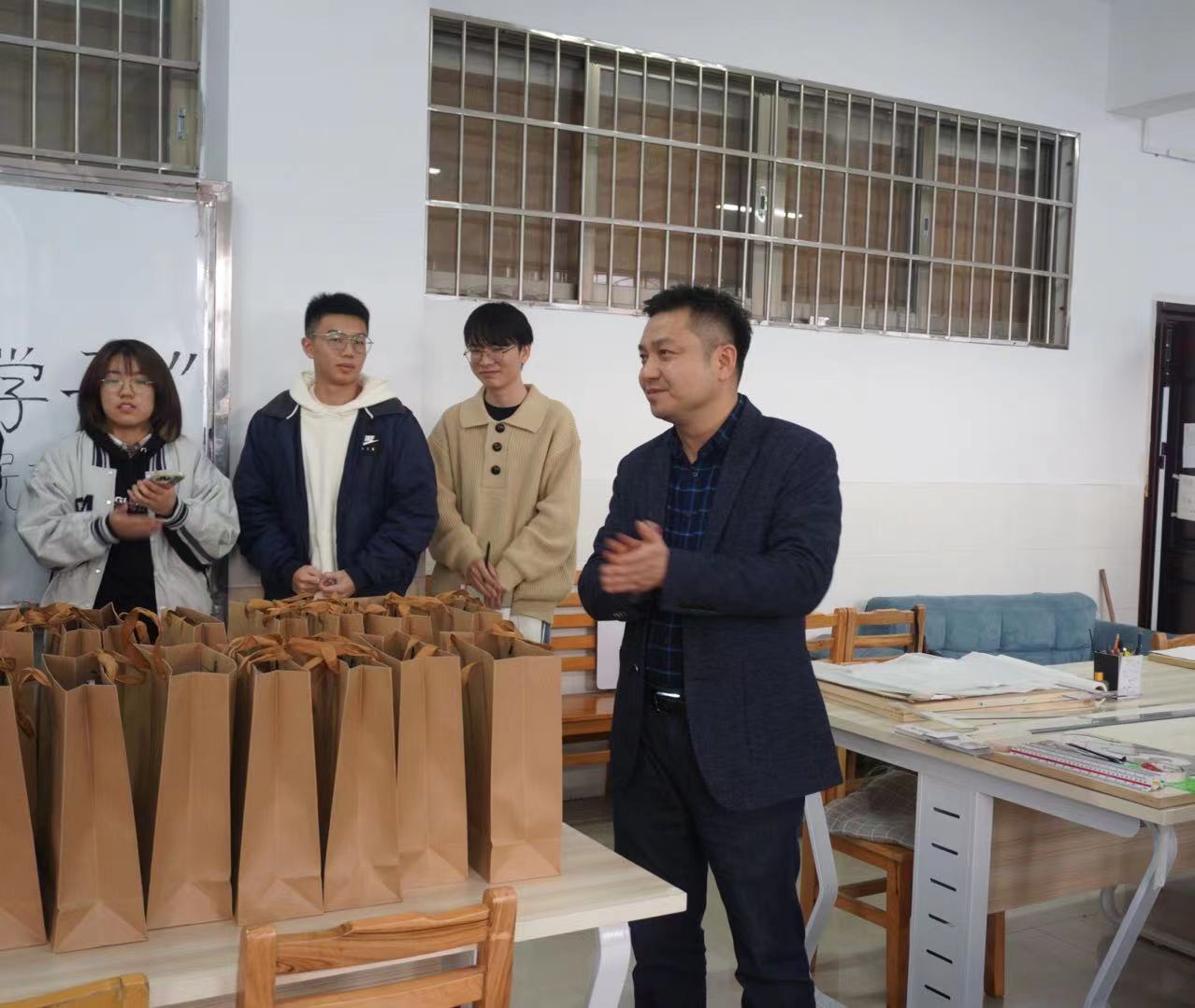 在自习室中,熊鹰携各位老师为全力备考的学生送上了“考研暖心礼包”,并与学生亲切交流,关心询问学生学习及生活情况,他充分肯定了同学们为实现梦想不断努力,敢于拼搏的奋斗精神,鼓励同学们用奋斗书写青春。同时,他建议同学们在考研最后的冲刺阶段根据自身实际情况及时调整复习计划,合理安排学习与休息,保重身体,并祝愿大家考试顺利,梦想成真。