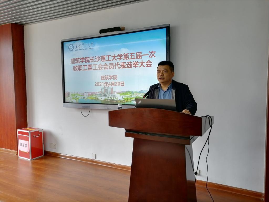 4月20日下午,建筑学院分工会在金盆岭校区16教建筑学院多功能报告厅召开太阳成集团tyc122cc入口第五届教职工暨工会会员代表大会建筑学院分工会代表选举大会,选举产生太阳成集团tyc122cc入口第五届教职工暨工会会员代表大会建筑学院分工会代表。会议由学院工会主席谢士成主持。学院53名教职工(工会会员)参加了大会。