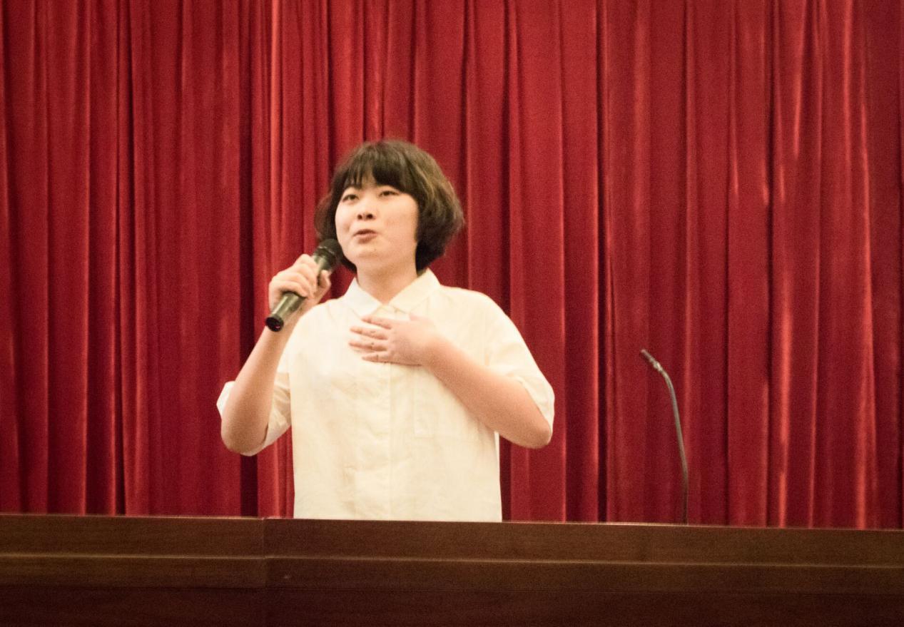 (孙鑫学姐在讲台上慷慨激昂的进行演讲)