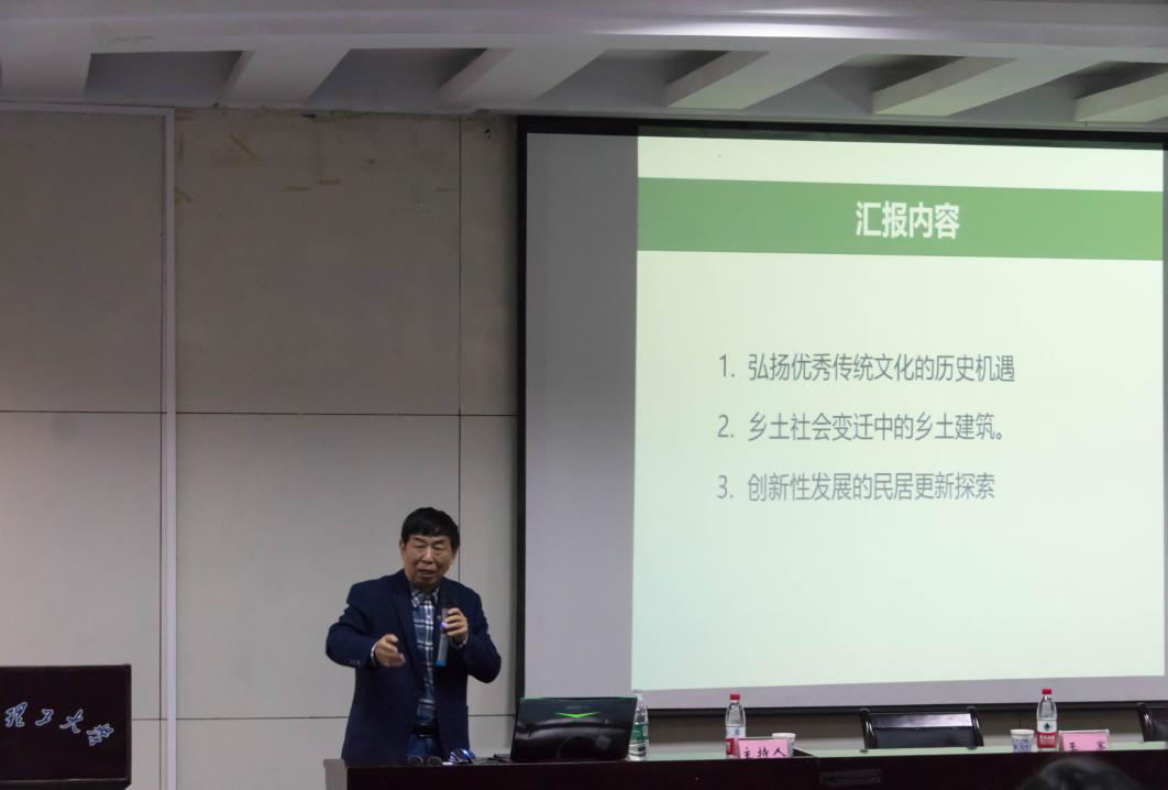 2018年11月5日下午,在太阳成集团tyc122cc入口金盆岭校区12教200,西安建筑科技大学建筑学教授、博士生导师王军教授作了主题为“乡土社会的变迁与乡土建筑的传承创新”的报告讲座,建筑学院师生参加了此次讲座。