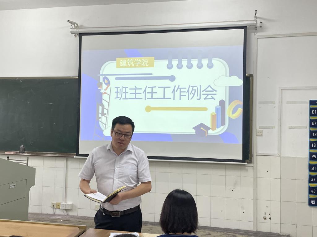 9月28日下午,建筑学院班主任工作会议在金盆岭校区16教313召开,学院代理党委副书记李家春、学工办周芳、王宇霖、郭恒及本科生各年级班主任参加会议。
