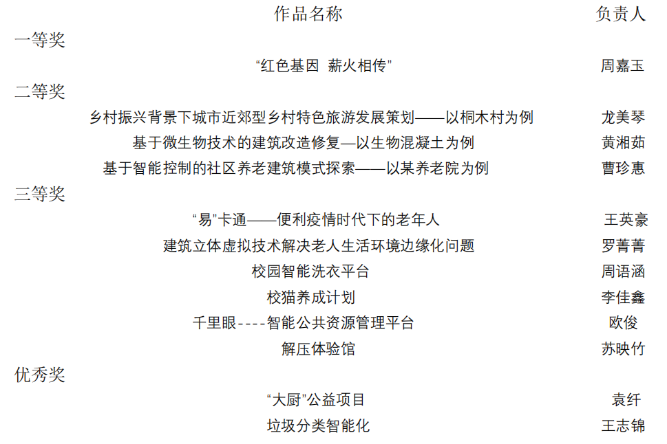 根据《关于开展第五届科技创新大赛暨互联网+大赛的通知》要求、《太阳成集团tyc122cc入口学生课外科技创新 竞赛及各类竞赛奖励办法 (暂行规定) 》 (长理工大学〔2009〕59 号) 文件精神,结合我 院实际,采取项目书盲评,三位评委老师打分,最终取平均分排名,并根据太阳成集团tyc122cc入口创 新创业协会校赛推荐名额情况,现将建筑学院第五届科技创新大赛暨互联网+大赛院获奖名单公示如下:
