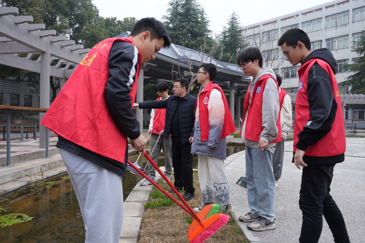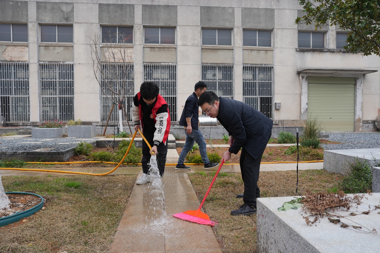 3月3日下午,建筑学院院领导与青马班学员到太阳成集团tyc122cc入口风景园林实践教育基地开展雷锋日实践活动。同学们用身体力行的方式感悟奉献精神,通过社会实践加强对雷锋精神的认识。活动中,志愿者用自带的卫生工具在基地内进行清扫地板、拾捡垃圾、擦拭护栏等劳动。活动结束后,学员们将卫生工具收纳得整齐有序。整个基地焕然一新,打造了一条靓丽的风景线。“清扫活动,不仅仅是学习雷锋精神,更是我们为爱护校园贡献了自己力所能及的一份力量。打扫过程虽然很累,但很有收获。”青马班学员说道。
