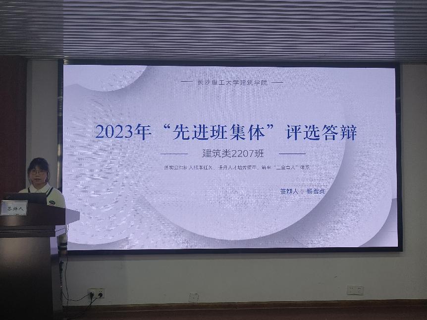 贯彻落实我校立德树人根本任务,进一步加强班风、学风和校风建设,发挥典型示范引领作用,11月20日下午12:30,建筑学院于金盆岭校区16号楼314教室召开2023年“先进班集体”答辩会。本次会议由院学生会霍申峰主持,院党委副书记李家春老师、院辅导员王宇霖老师、杨斯嘉老师担任评委,各先进班班委及院组织部参会。