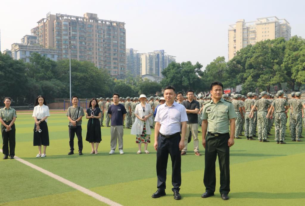 9月26日上午,建筑学院党委书记熊鹰、代理副书记肖义慧、城规系主任贺鹏、风景园林系副主任曹盼、美术教研室主任李洁老师,实验中心主任蒋毅老师,党政办主任潘巧伟,班主任唐量、徐守珩,辅导员王宇霖、陶蓝、杨斯嘉、王栩婕来到军训训练场对训教官和全体2024级新生进行走访慰问