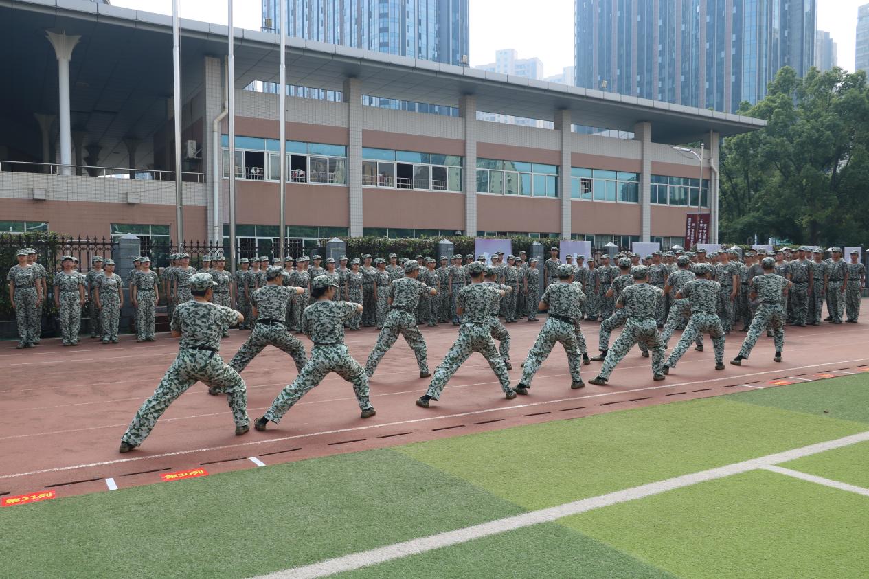 慰问开始前,师生合影。随后,慰问活动进行了连队阶段性训练成果展示,包括分列式展示、擒拳展示、队列会操展示。接着,院党委书记熊鹰发表讲话,他代表学院对辛勤付出的教官表示感谢,对新生阶段性训练成果表现出的坚持不懈、坚韧不拔的意志表示赞许。他指出,军训是大学的第门必修课也是大学最重要的一门课,希望同学们把从军训中培养的不怕困难、披荆斩棘的精神,团队协作、攻坚克难的意识带到今后的学习生活当中去。同学们表示,军训的艰苦磨练铸就了他们“钢”的意志和“铁”的精神,他们将珍惜最后四天的训练时间,不抛弃、不放弃,努力为自己和学院交出满意的答卷。最后学院领导、老师为军训教官送上慰问品并合影留念。