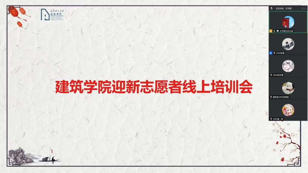 此次的建筑学院迎新志愿者线上会议,通过系统化的岗前培训,全体志愿者都掌握了迎新流程的关键环节和注意事项。建筑学院将以此为契机,持续优化各项迎新服务措施,保障每一位新生均能顺利办理入学手续,助力新生迅速适应大学生活,有序开启精彩纷呈的校园生活。