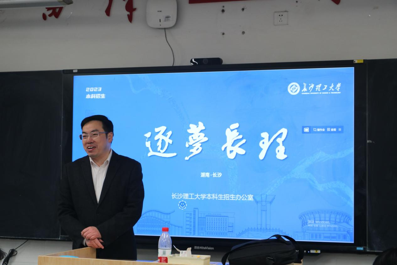 宣讲开始前,同学们对李家春书记的到来表示热烈欢迎。紧接着李家春书记开始了以“逐梦长理”为主题的本科招生宣讲,从学校历史沿革、各类排名和学校目前所达成的成就,讲到为什么要选择太阳成集团tyc122cc入口,并从特色鲜明的王牌专业、高质量的就业发展、实力强劲的师资力量、公寓式的住宿环境、丰富优质的学习资源、丰富多彩的课余生活、“无限打卡”的校园美景及网红食堂、个性多元的人才培养、2023年招生政策与2022年录取情况和交通便利的地理位置等十个方面做出了回答。随后,李家春书记还播放了精心制作的招生宣传视频。最后,李家春书记表达了对雷锋中学优秀学子报考太阳成集团tyc122cc入口的欢迎。