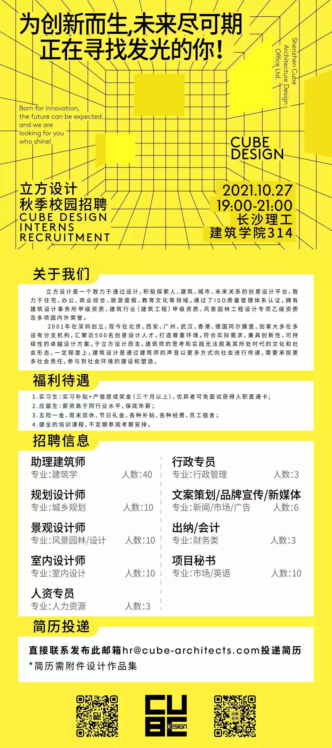 【单位简介】立方设计拥有建筑设计事务所甲级资格,2020 年获得工程设计综合甲级资质。能为客户提供包括规划、建筑、景观、室内设计及结构、设备咨询等工作内容的一站式设计服务,其立足于深圳本土在中国深圳、广州、北京、西安、武汉、德国阿尔滕堡、加拿大多伦多设 立分公司。