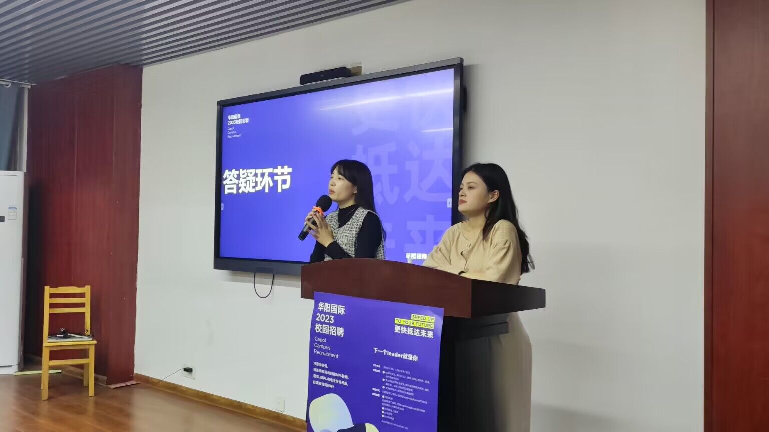 主宣讲人肖雅仪代表华阳国际工程设计公司向到场的长理学子表示欢迎。她通过展示公司参与设计过的建筑,展现了工程设计的工作内容。同时,她也在展示过程中让大家学习到了职业生涯规划的相关知识,她建议在座同学们要根据性格、兴趣、优势这三个因素来选择自己的工作。展示结束之后,同学们踊跃提问,将自己对择业、就业、发展等方面的疑问一一提出。主宣讲人肖雅仪为在座学生耐心解惑,令在场长理学子收获甚多。