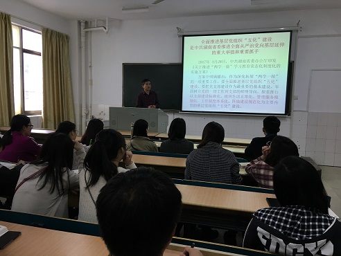 毛书记最后简略地介绍了基层党组织“五化”建设的推进目标、方法步骤和措施。并提出:希望建筑学院党支部能够积极加强“五化”建设,增强建设的针对性和时效性,针对“五化”建设标准,查找薄弱环节,有针对性地制定方法措施,解决好问题,将其建设成为一个有效率、有活力、有特色的党支部。