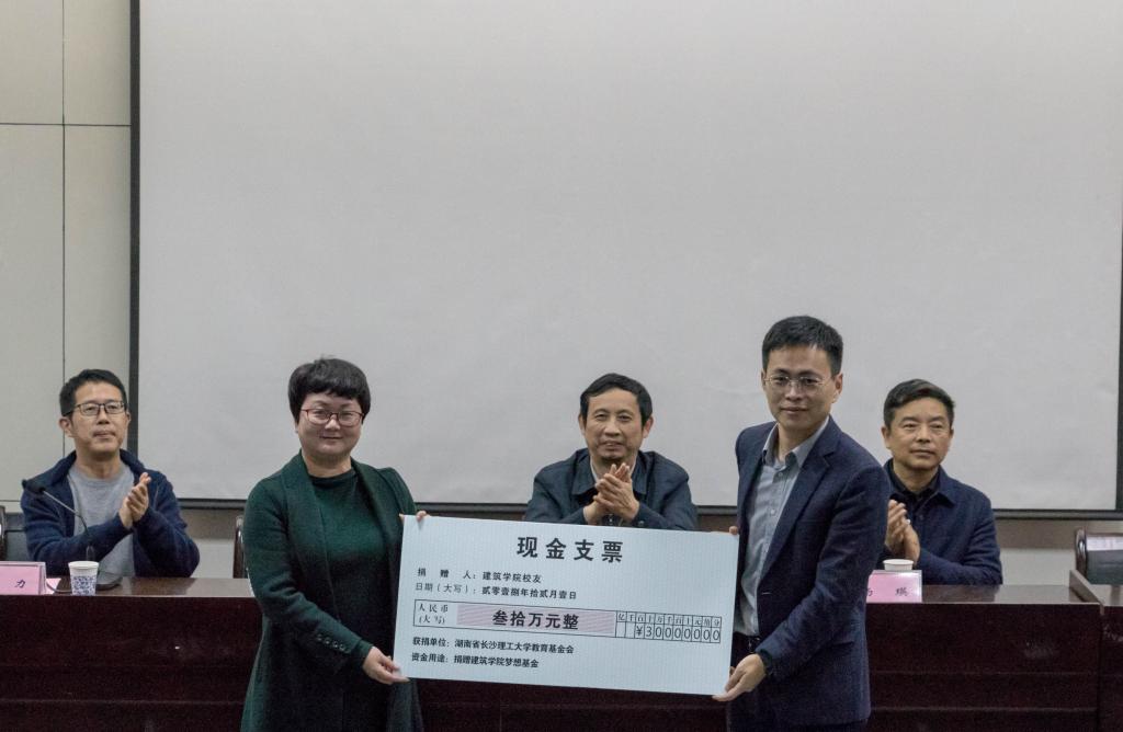 校友处郑延恒代表太阳成集团tyc122cc入口教育基金会接受了第一批三十万“建筑学院梦想基金”的捐赠。