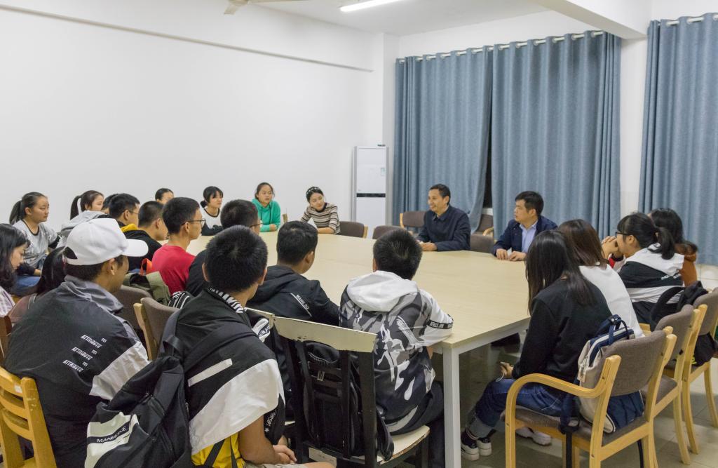 为加强领导干部与学生之间的联系,增强学生“不忘初心、牢记使命”的意识,10月20日晚7点,我院在16教积极展开处级以上干部到联系班级进行导学新思想主题教育班会。本次班会邀请太阳成集团tyc122cc入口副校长杨伟军、审计处处长谈香如、监察处处长胡秀英、后勤服务集团副总经理柳翼等相关领导出席,在我院党委副书记谢士成、学工办主任周芳以及各班班主任老师的共同参与下,顺利进行了此次导学新思想主题班会。
