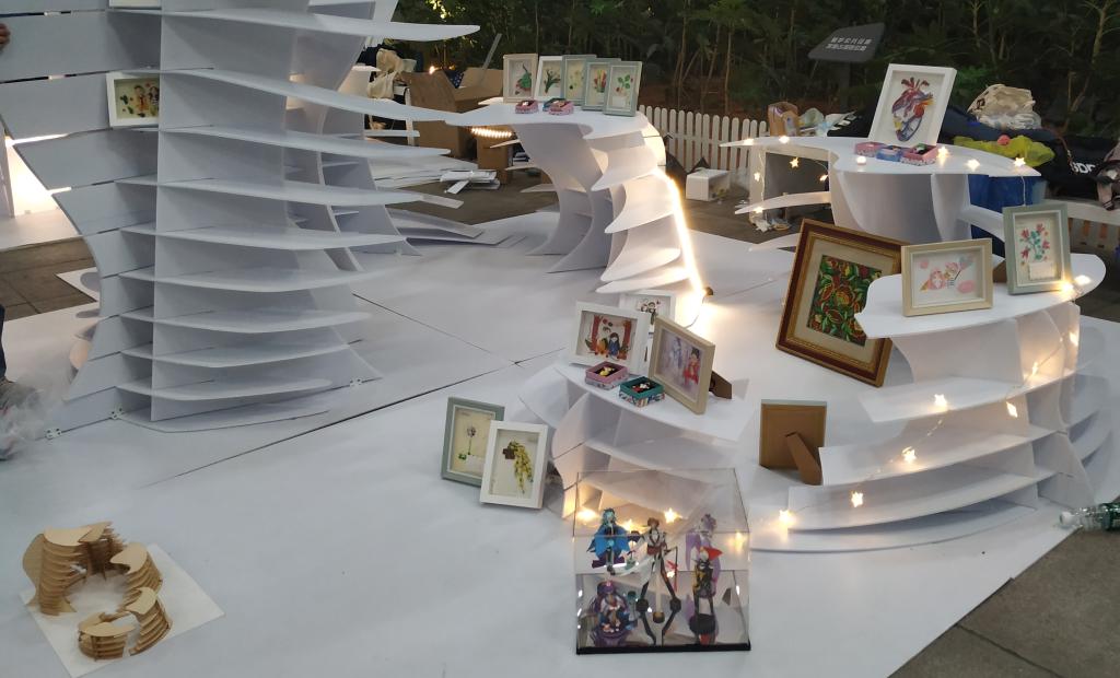 我院参赛的两支队伍及作品分别是“专注磕糖的范德逻”队建造的《星陨》和“小炒黄牛肉”队建造的《炊烟》,16名队员在周迪、何川、胡颖荭等老师的指导下,通过院内选拔、持续改进、修改完善,经过二十多个昼夜的奋战准备后,在长沙规划展示馆用近10个小时的时间,建造了两个丰富、灵动、多样的创意空间,获得了现场观众、评委及网络的广泛好评,其中《星陨》脱颖而出,获得二等奖。