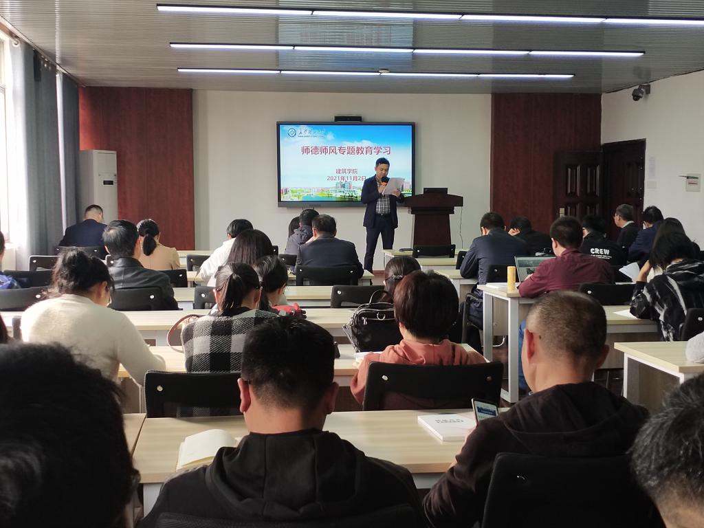 为落实湖南省教育厅《“师德师风建设年”推进方案》、2021年9月13日全省教育系统师德师风建设推进工作视频会议精神和学校《关于开展师德师风专题教育学习的通知》等部署和要求,建筑学院开展了师德师风教育学习活动。