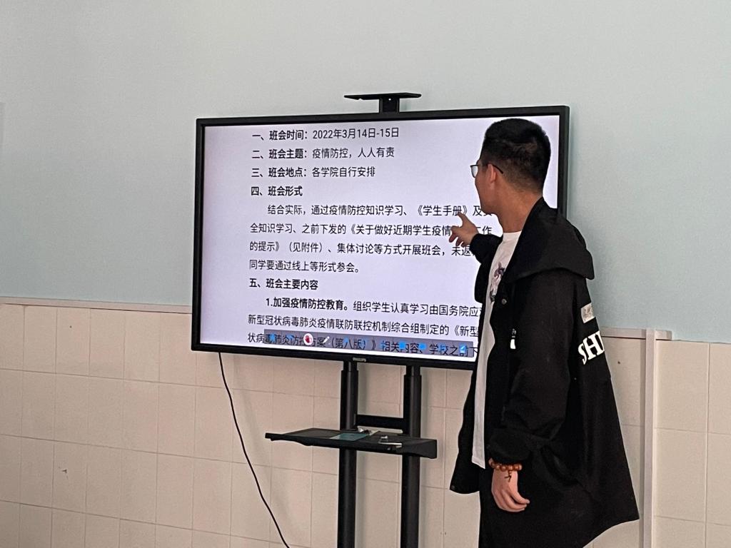 近日,国内疫情防控形势严峻复杂,为加强学生疫情防控常态下的教育管理,增强学生防疫意识,提高防护能力,促进学生身心健康。3月14日晚上开始,建筑学院通过线上和线下相结合的方式,陆续组织各班顺利召开了以“疫情防控 人人有责”为主题的新学期第一次主题班会,共覆盖学院21个行政班级,班会由各班班主任主持。