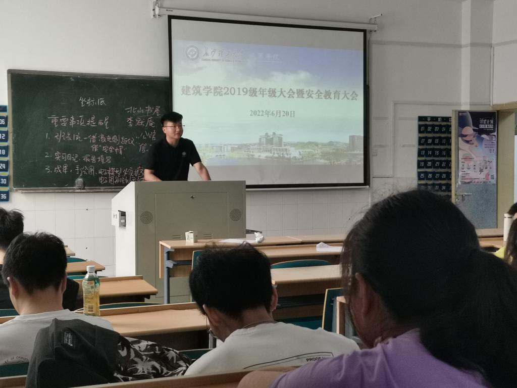 为确保学生安全有序离校,度过一个平安祥和的暑假。6月20—30日,建筑学院在16号教学楼、4教报告厅等场所,分年级陆续召开2022年暑期离校及安全教育大会,全体辅导员担任主讲,全体学生参加。