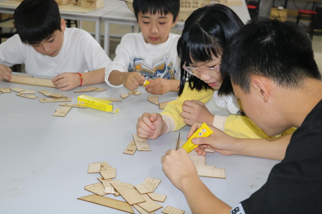 志愿者还为孩子们准备了手工拼接模型,在师生共同努力下,孩子们拼接出“新民学会旧址”建筑模型。
