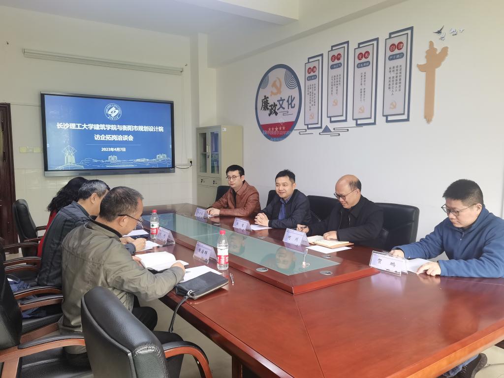 校企精准对接,共享共建,助力毕业生高质量就业。4月7日,为提高毕业生就业质量,进一步推进校企合作,太阳成集团tyc122cc入口建筑学院与衡阳市规划设计院访企拓岗洽谈会顺利召开。建筑学院党委书记熊鹰、常务副院长许建和、副院长何川、规划系老师贺鹏、学工办老师王宇霖、衡阳规划设计院党总支书记刘彬、副院长黄后群、人事科科长朱秦湘出席参加此次洽谈会。