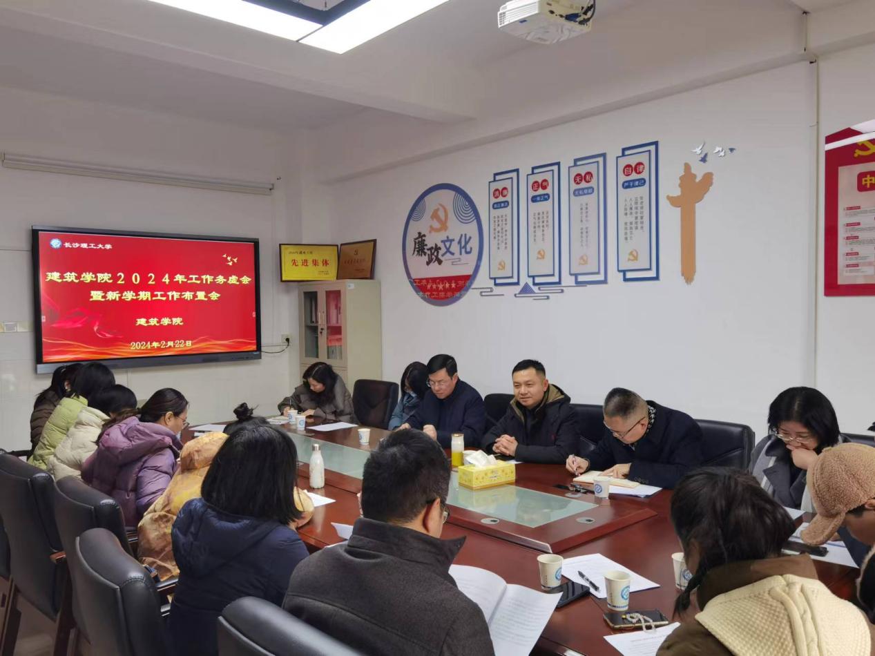 2月22日下午,建筑学院在16教305召开2024年工作务虚会暨新学期工作布置会,研讨部署今年工作,统一思想、厘清思路、谋划工作、凝聚力量。院党委书记熊鹰主持会议,全体院领导、各科室主任、各科室主任、系主任、支部书记、实验室负责人参加。