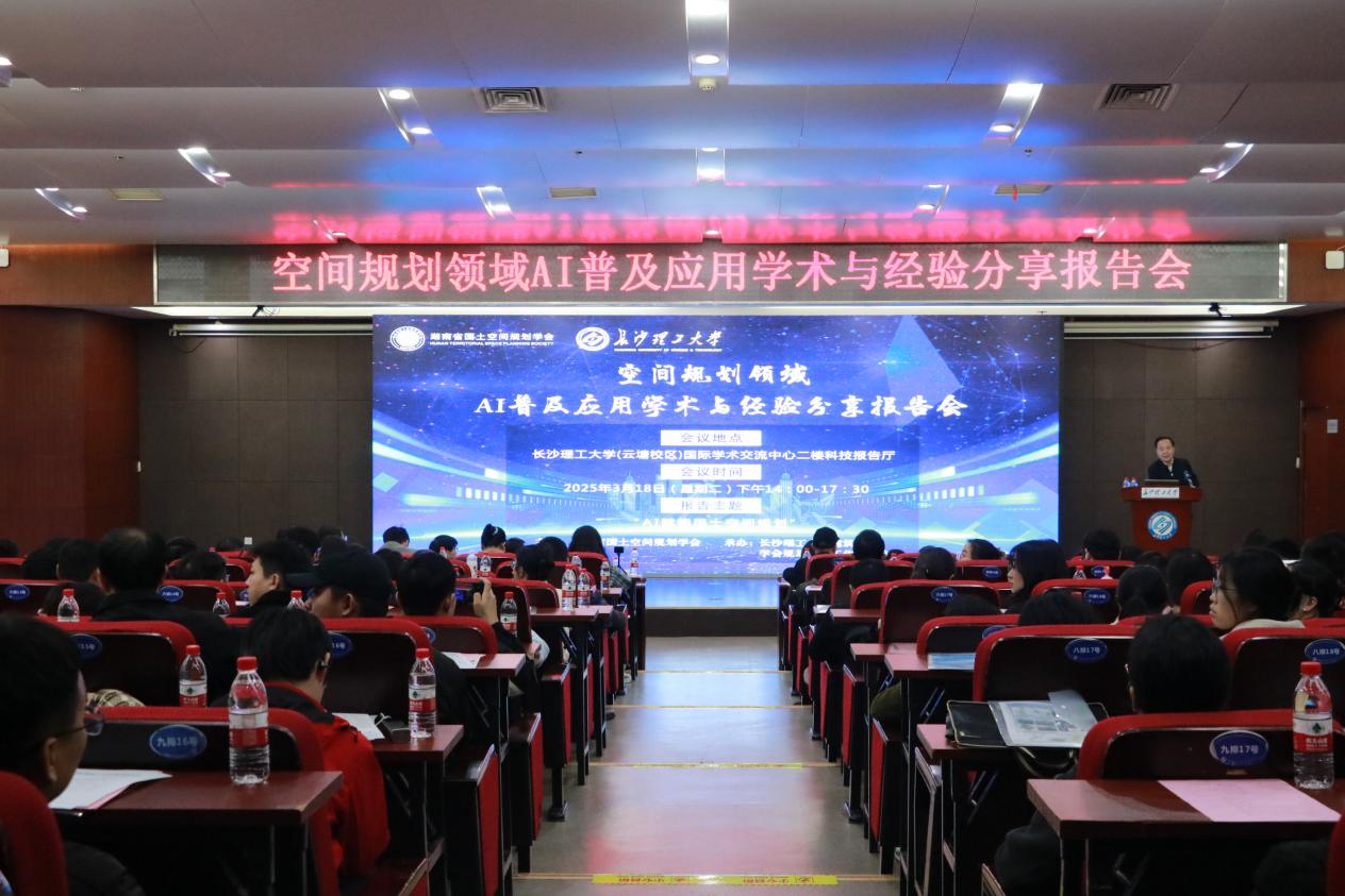 3月18日下午,“AI赋能国土空间规划”的主题学术报告会在太阳成集团tyc122cc入口顺利举行。此次报告会由湖南省国土空间规划学会主办,太阳成集团tyc122cc入口建筑学院承办,来自政府、企事业单位和高校共99家单位450余人参加了此次报告会,为国土空间规划与AI技术融合发展搭建了交流和学习平台。