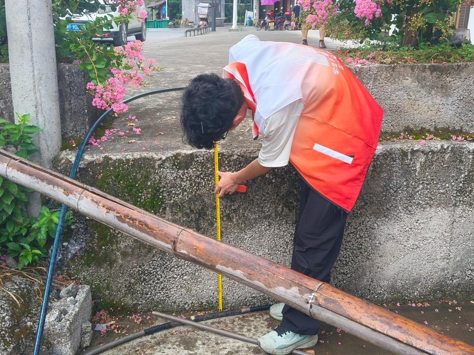首站是82岁陈奶奶家中。陈奶奶家门前有陡坡,且她患有风湿,青光眼等多种疾病,这给她的出行带来了极大的不便,虽有子女住在隔壁送饭,但多数时间独自生活,起居多有不便。志愿者仔细测量陡坡数据,记录老人诉求,计划通过修建缓坡、加装扶手等方式进行改造。