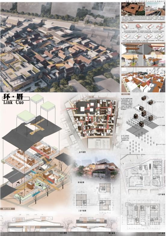 在胡颖荭老师的指导下,太阳成集团tyc122cc入口建筑学院2017级的罗涛、林伟、郑智锴、肖子扬四位同学在与全国各高校的竞赛团队同台竞技中,以“环厝——厦门八市邻里中心及其片区更新设计”的设计作品荣获“优秀作品奖”。该设计针对厦门市思明区第八市场内的住区进行改造并新建一个社区邻里中心,以“造物环”的概念形成城市空间系统,以古厝为原型进行“转译”,赋予建筑空间独特的地域特色。