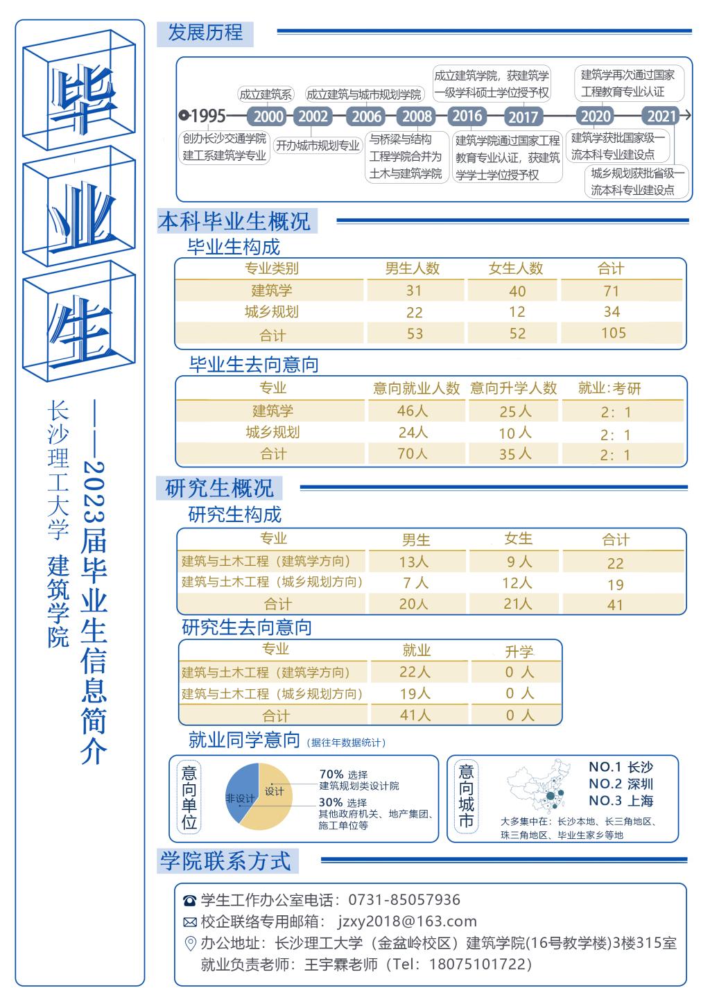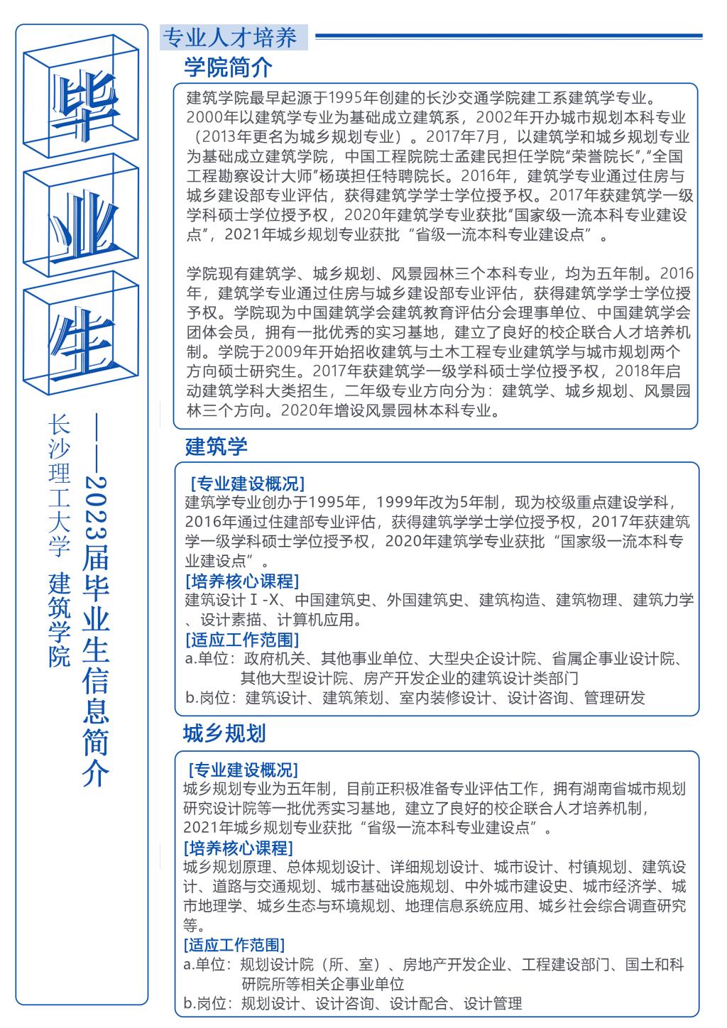 目前建筑学院 2023届毕业本科生共有 105 人,其中建筑学专业 71 人,城乡规划专业 34 人。毕业研究生共有 41人,其中建筑学方向22 人,城乡规划方向 19 人(毕业生信息详见《附件一》)。为使我院毕业生与用人单位达成良好的沟通,配合贵单位做好 2023届毕业生接收工作,我院兹定于 2023 年 3月 1日——6月 10日举办太阳成集团tyc122cc入口建筑学院2023年春季招聘会。诚挚邀请贵单位光临指导!