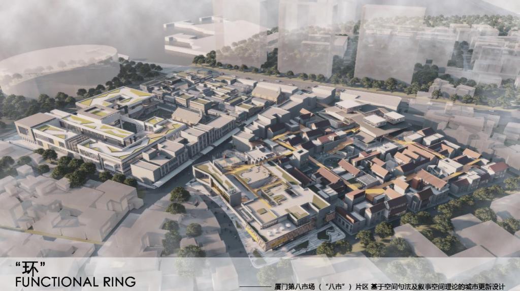 联合毕业设计的项目位于厦门老城区的厦门第八菜市场,是老城区最传统和最繁茂的市场。每组同学应完成约6公顷用地的旧城更新城市设计,并拟置入建筑功能:创客中心、旧城邻里中心、网红鱼市场、文化中心。